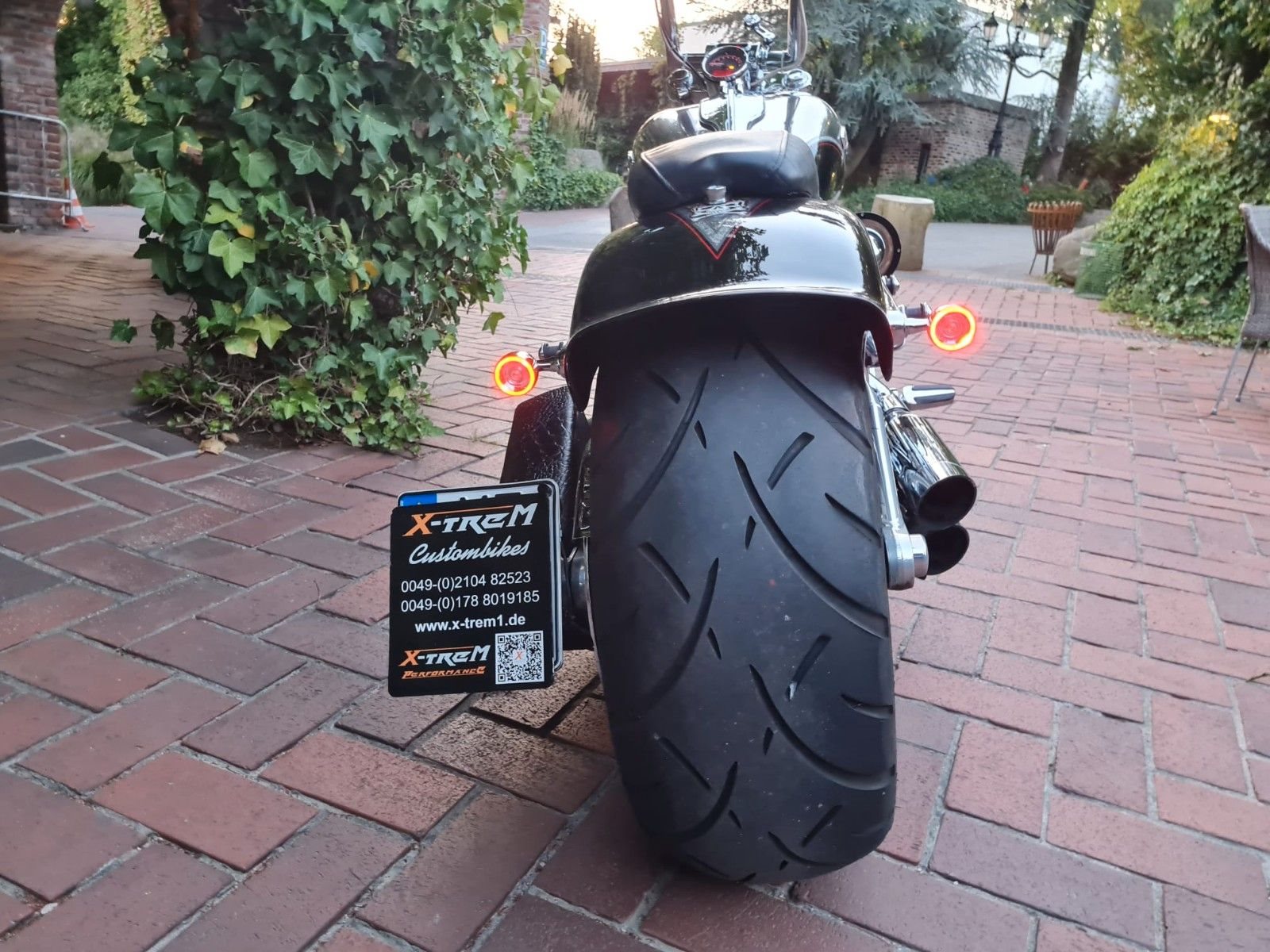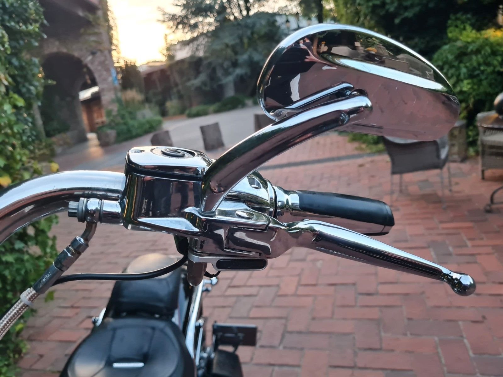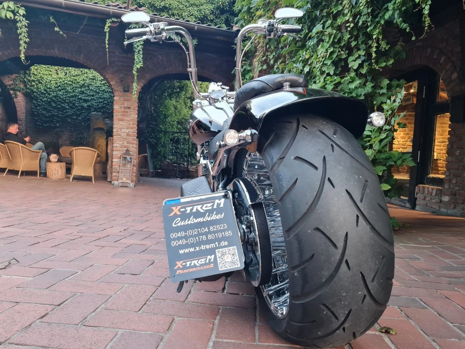 Jekill & Hyde Komplettanlage mit kurzen Krümmern Müller Tieferlegungskit 260/40 R18 Hinterreifen Metzeler ME888 Seitlicher Kennzeichenhalter Iron Optics Kellermann Bullet 3-1 Blinker hinten Schwingentasche Krokodilleder SP-Connecet Handyhalterung Lenker LA Choppers - 40cm hoch LED Strip Blinker unter Armatur Screamin Eagle Heavy Breather Luftfiltercover Alle Umbauten sind Eingetragen