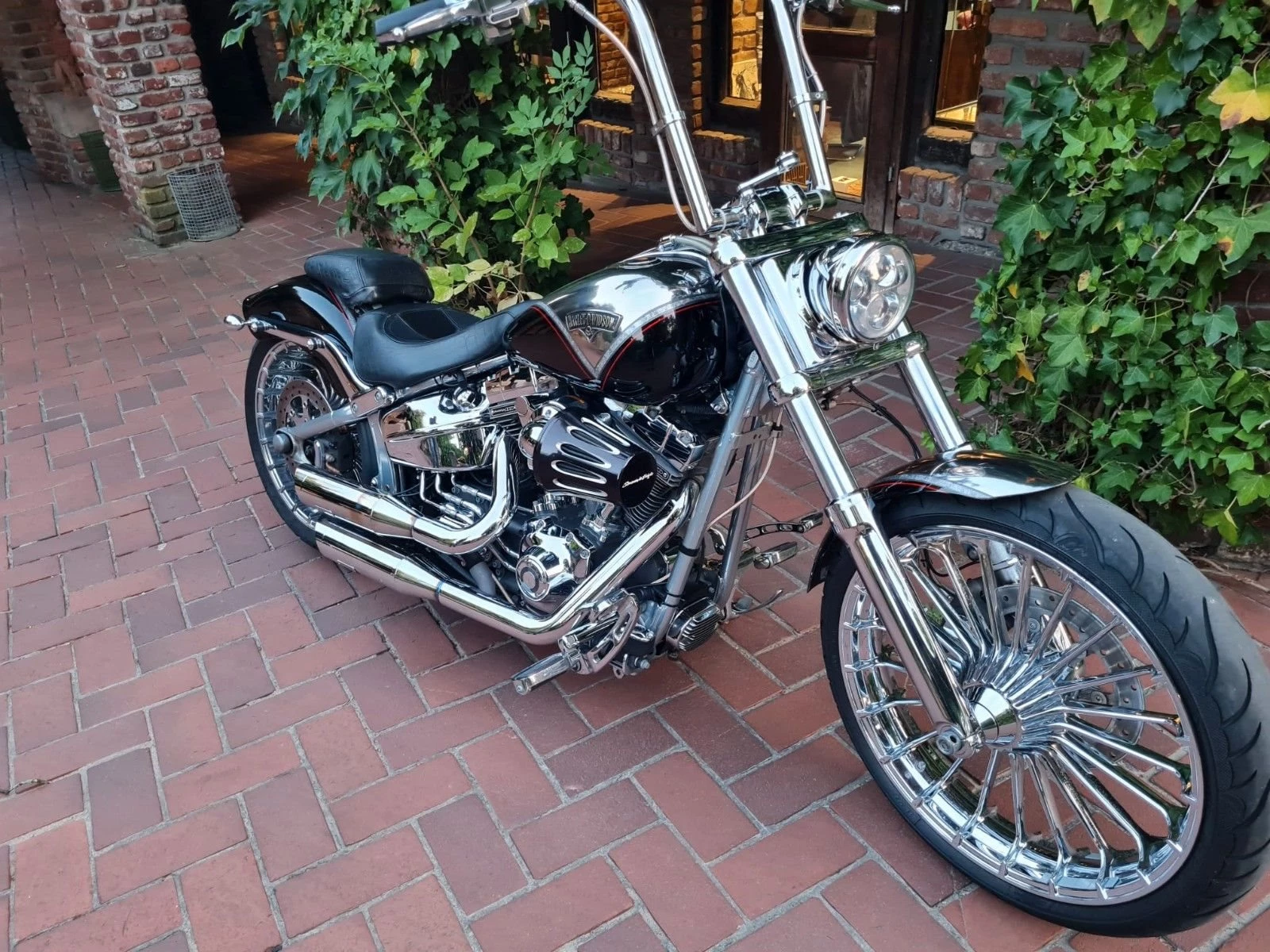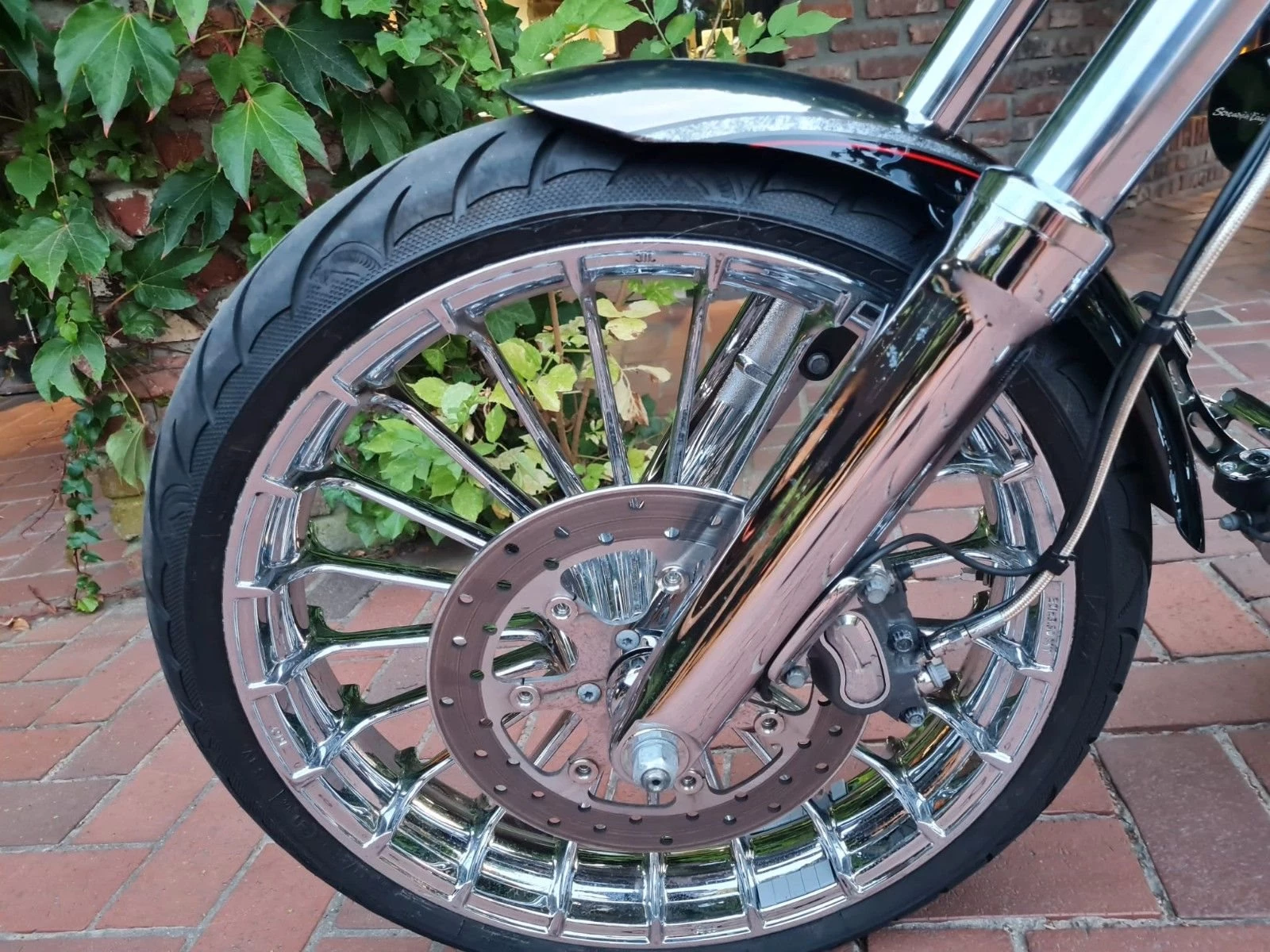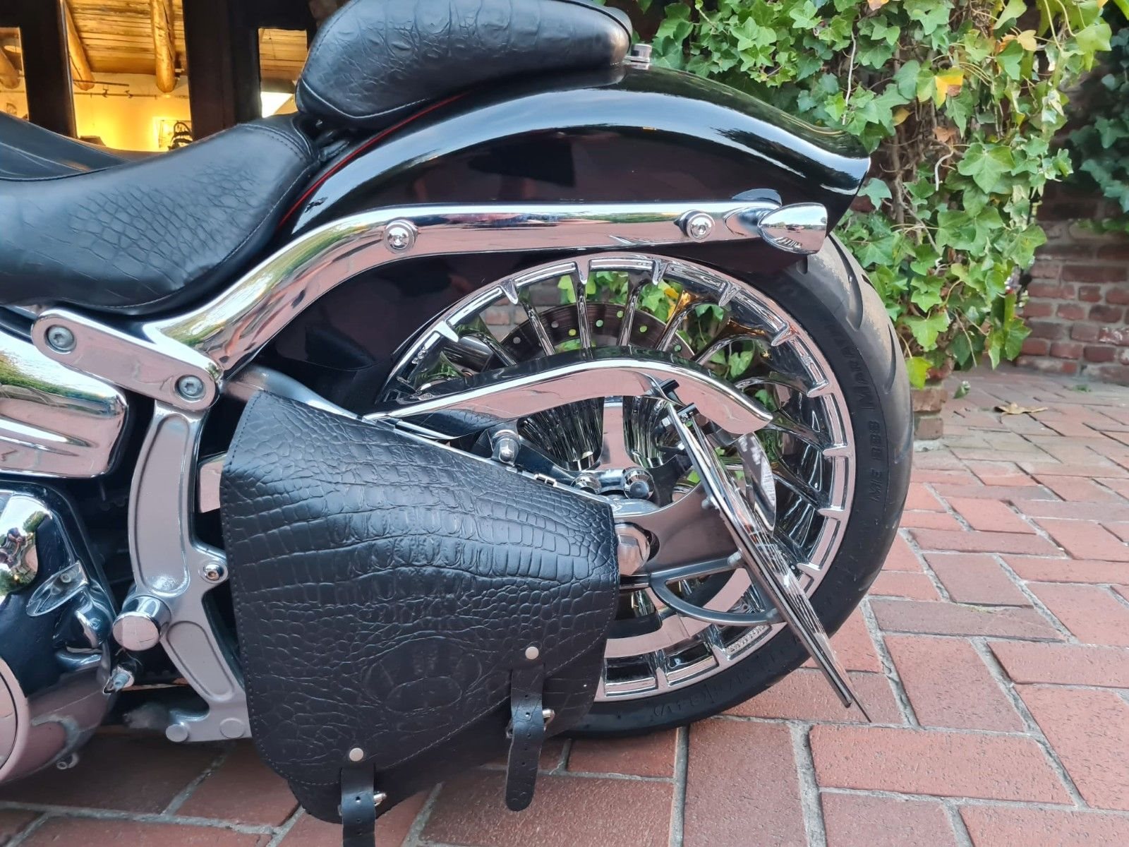 Jekill & Hyde Komplettanlage mit kurzen Krümmern Müller Tieferlegungskit 260/40 R18 Hinterreifen Metzeler ME888 Seitlicher Kennzeichenhalter Iron Optics Kellermann Bullet 3-1 Blinker hinten Schwingentasche Krokodilleder SP-Connecet Handyhalterung Lenker LA Choppers - 40cm hoch LED Strip Blinker unter Armatur Screamin Eagle Heavy Breather Luftfiltercover Alle Umbauten sind Eingetragen