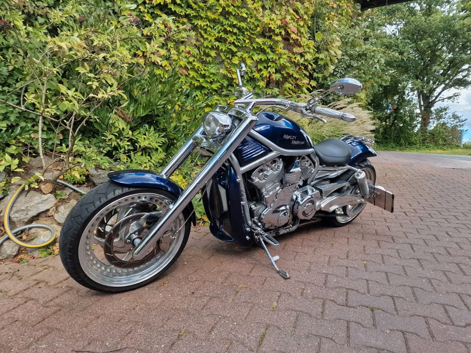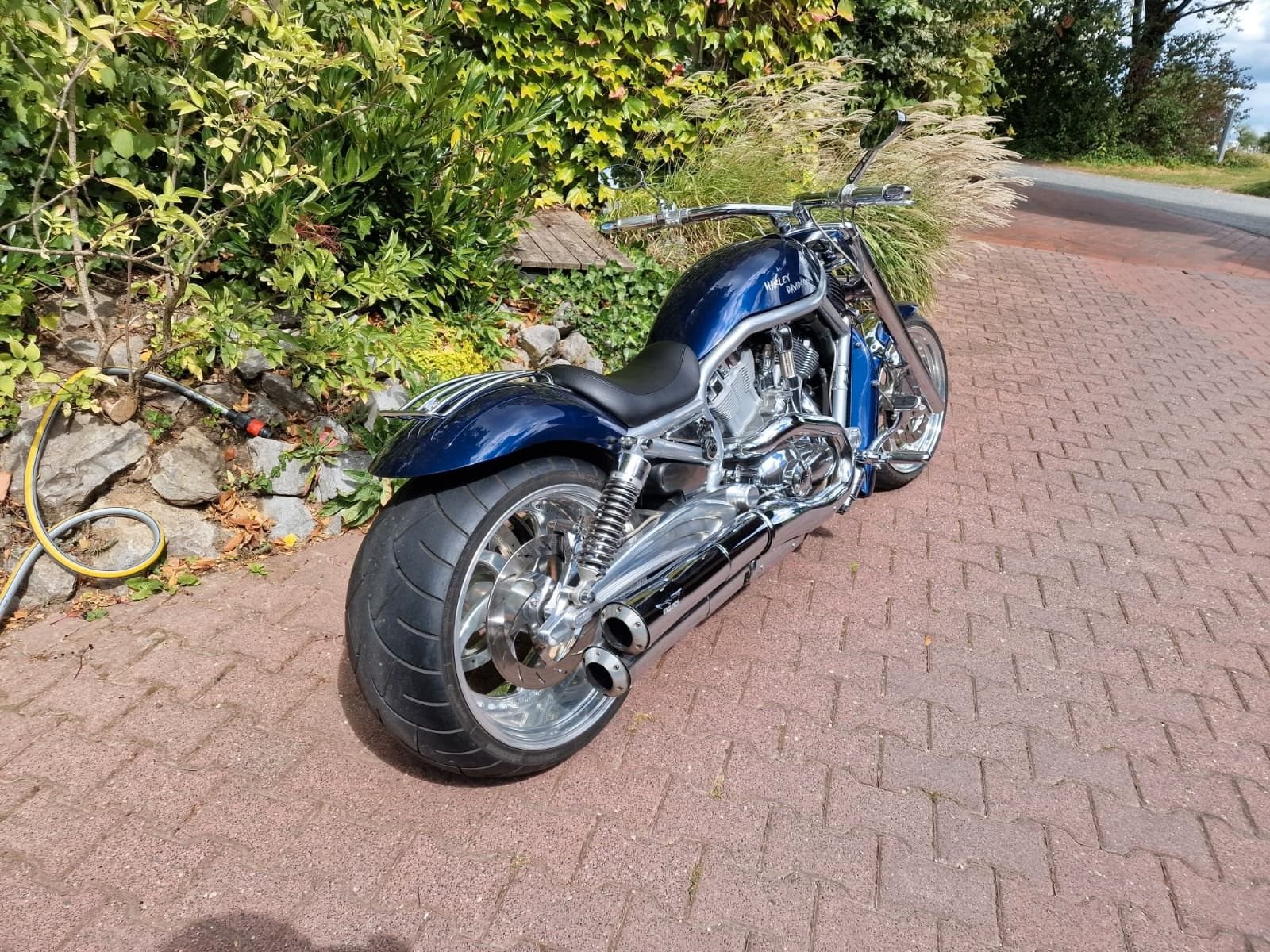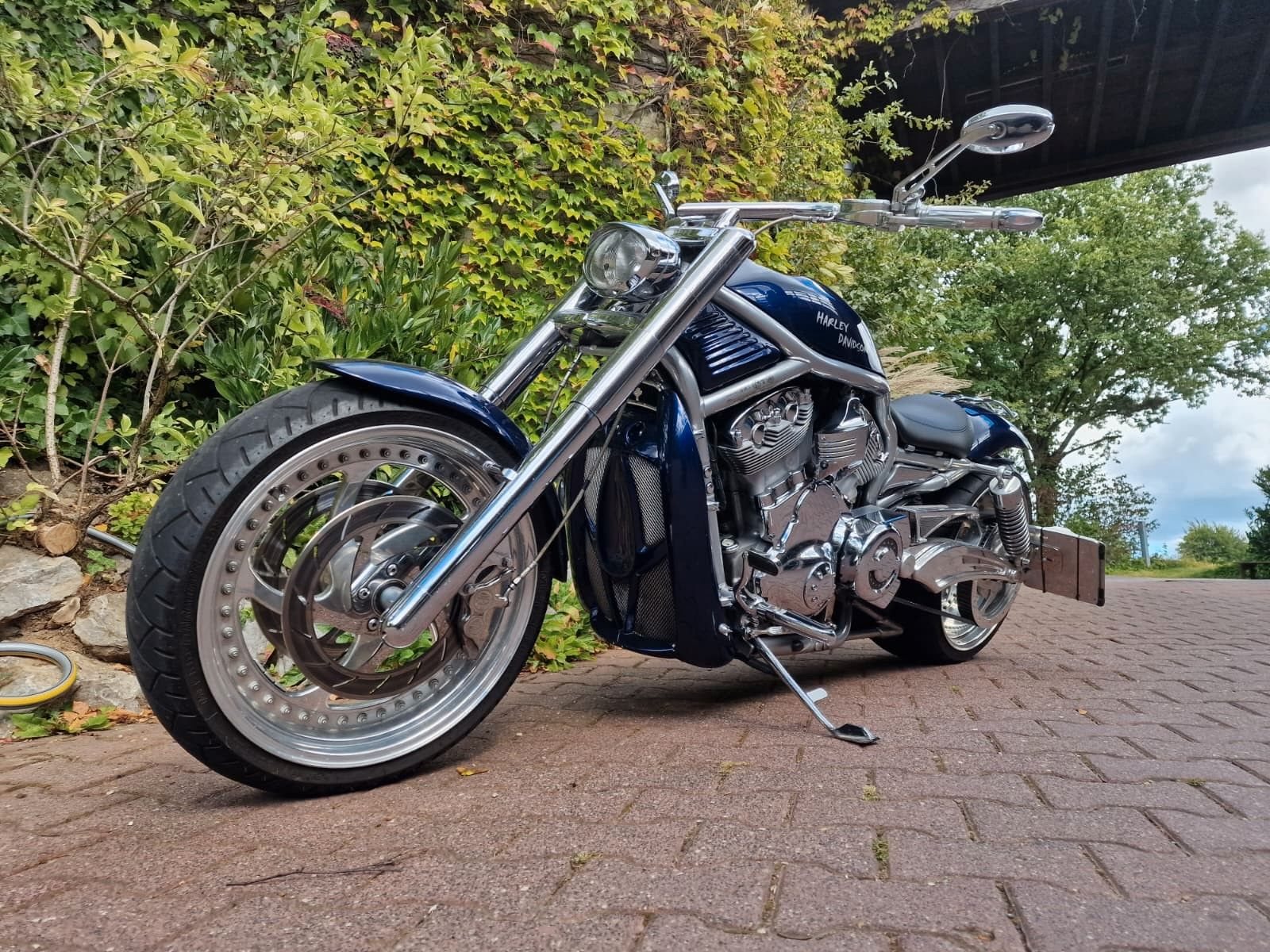 Wunderschöne V-Rod im Bestzustand.Von Thunderbike mit den teuersten Teilen umgebaut. Unglaublich viele & teure Extras. Angefangen bei der Thunderbike Freestyle Gabel (ca. 5500,- Euro) über die dreiteiligen Ricks Räder, die Ricks Aluminium Customschwinge, die Ohlins Stoßdämpfer , Kess-Tech und vieles vieles mehr. Es handelt sich um ein offizielles 5 HD Modell. Die Umbauten haben ca. 33000,-€ gekostet, wobei davon alleine 27000,-€ nur Teilekosten waren. Ein Bike mit Potential, um wie z.B. spektakilärere Airboxcover, Heckfender usw. Für Liebhaber des Dark Custom Looks, wäre bei dem geringen Kaufpreis, noch reichlich Luft um alles schwarz zu beschichten.