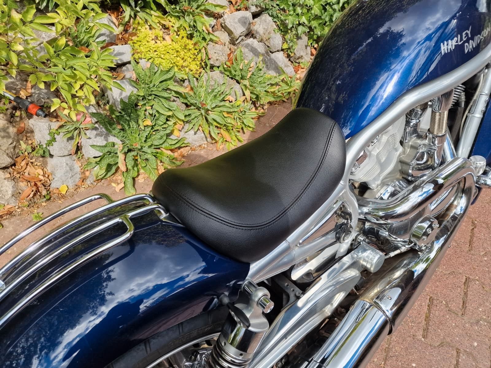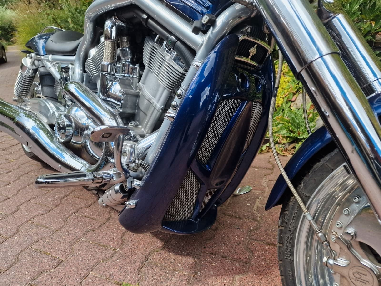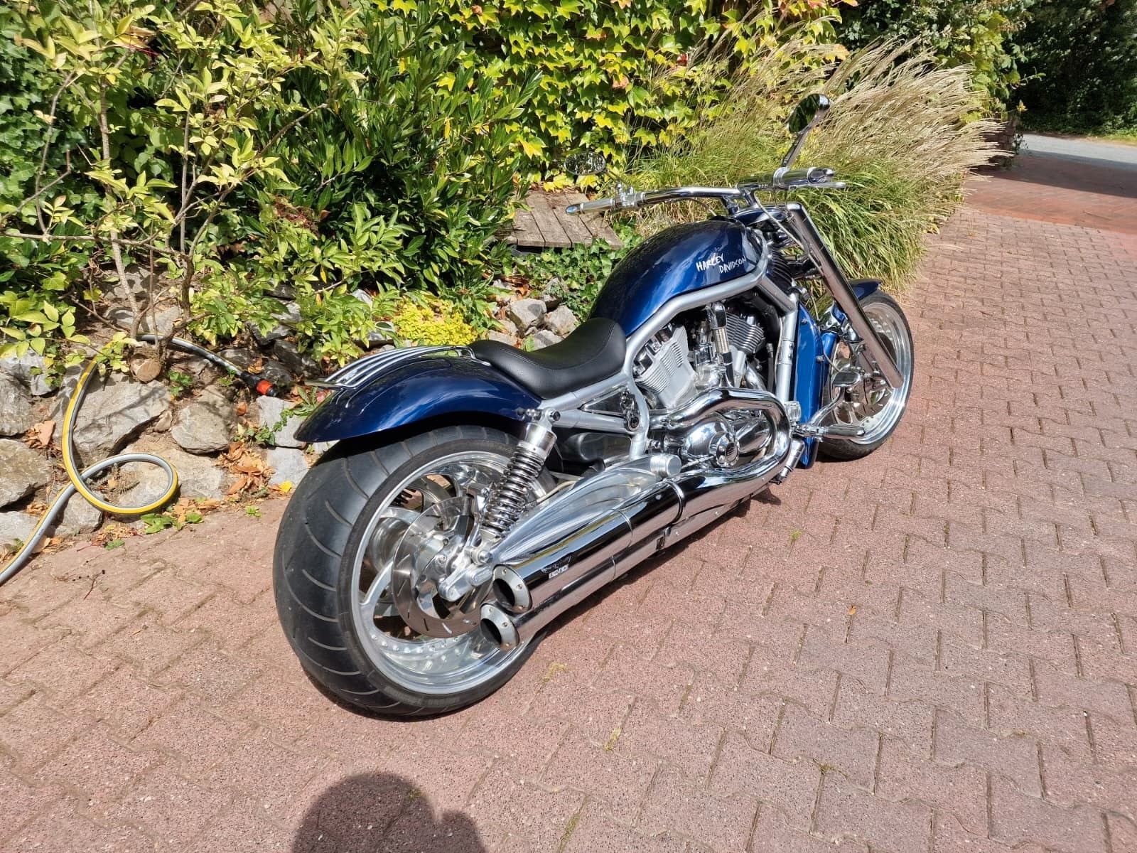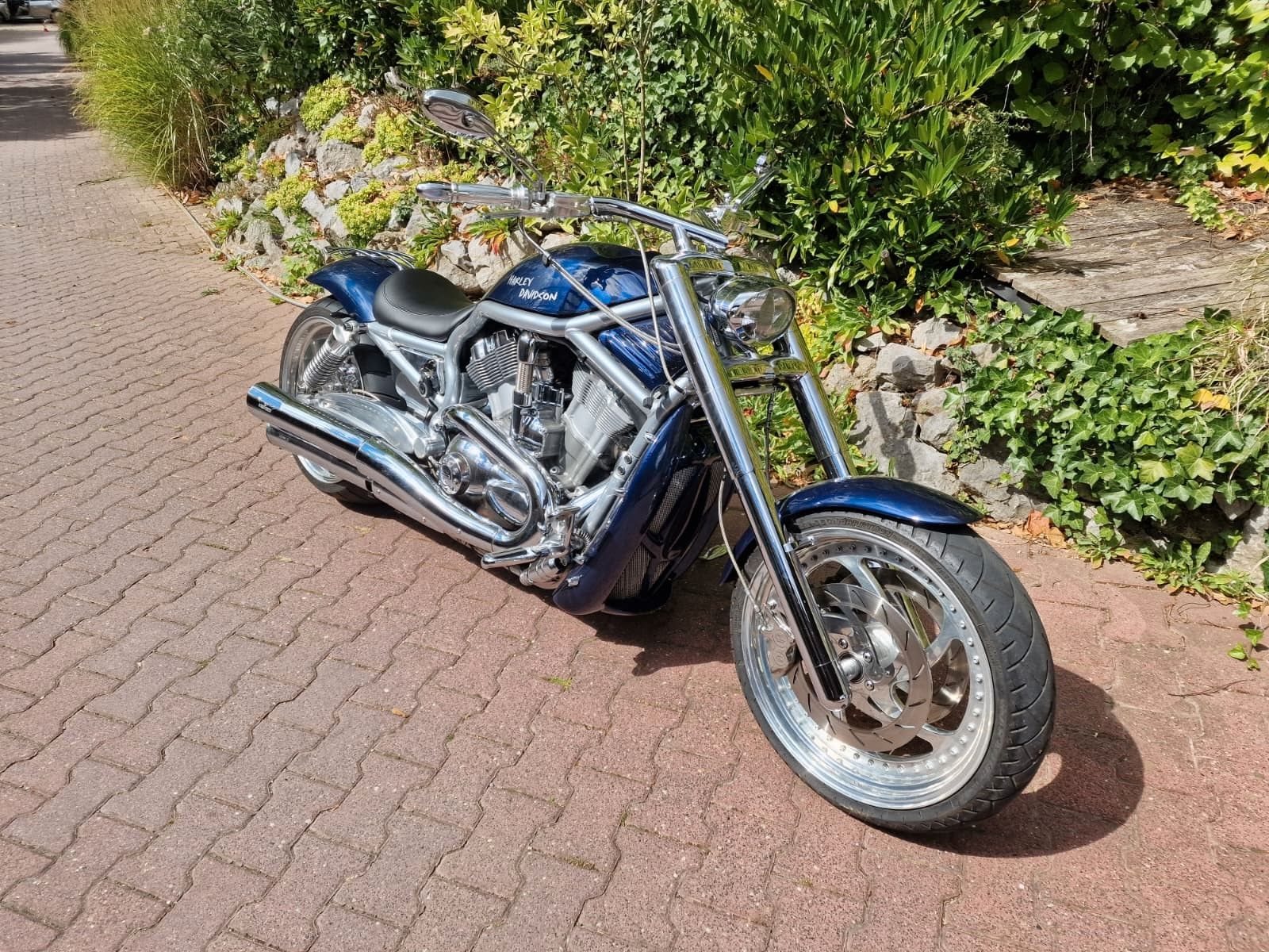Wunderschöne V-Rod im Bestzustand.Von Thunderbike mit den teuersten Teilen umgebaut. Unglaublich viele & teure Extras. Angefangen bei der Thunderbike Freestyle Gabel (ca. 5500,- Euro) über die dreiteiligen Ricks Räder, die Ricks Aluminium Customschwinge, die Ohlins Stoßdämpfer , Kess-Tech und vieles vieles mehr. Es handelt sich um ein offizielles 5 HD Modell. Die Umbauten haben ca. 33000,-€ gekostet, wobei davon alleine 27000,-€ nur Teilekosten waren. Ein Bike mit Potential, um wie z.B. spektakilärere Airboxcover, Heckfender usw. Für Liebhaber des Dark Custom Looks, wäre bei dem geringen Kaufpreis, noch reichlich Luft um alles schwarz zu beschichten.