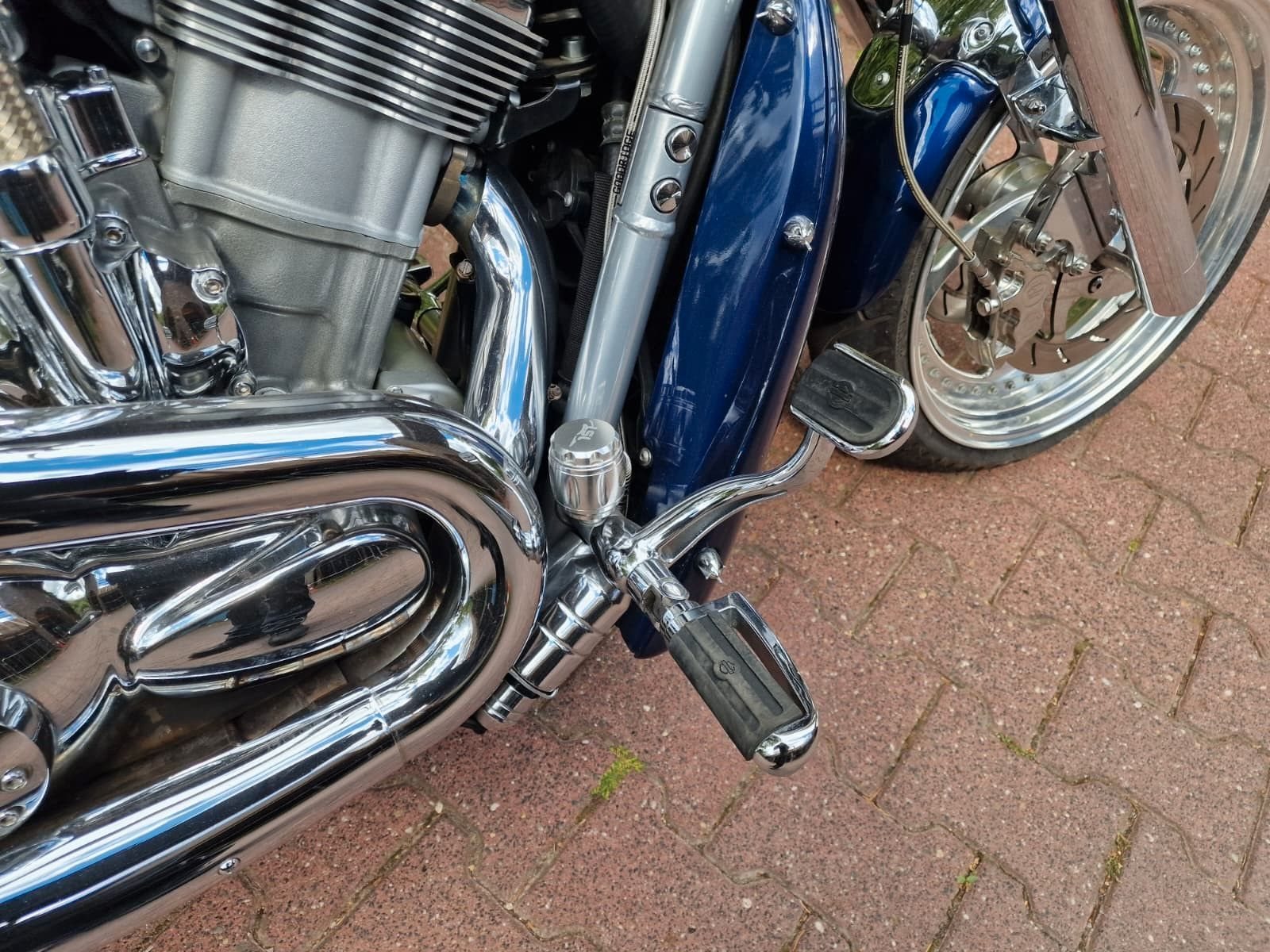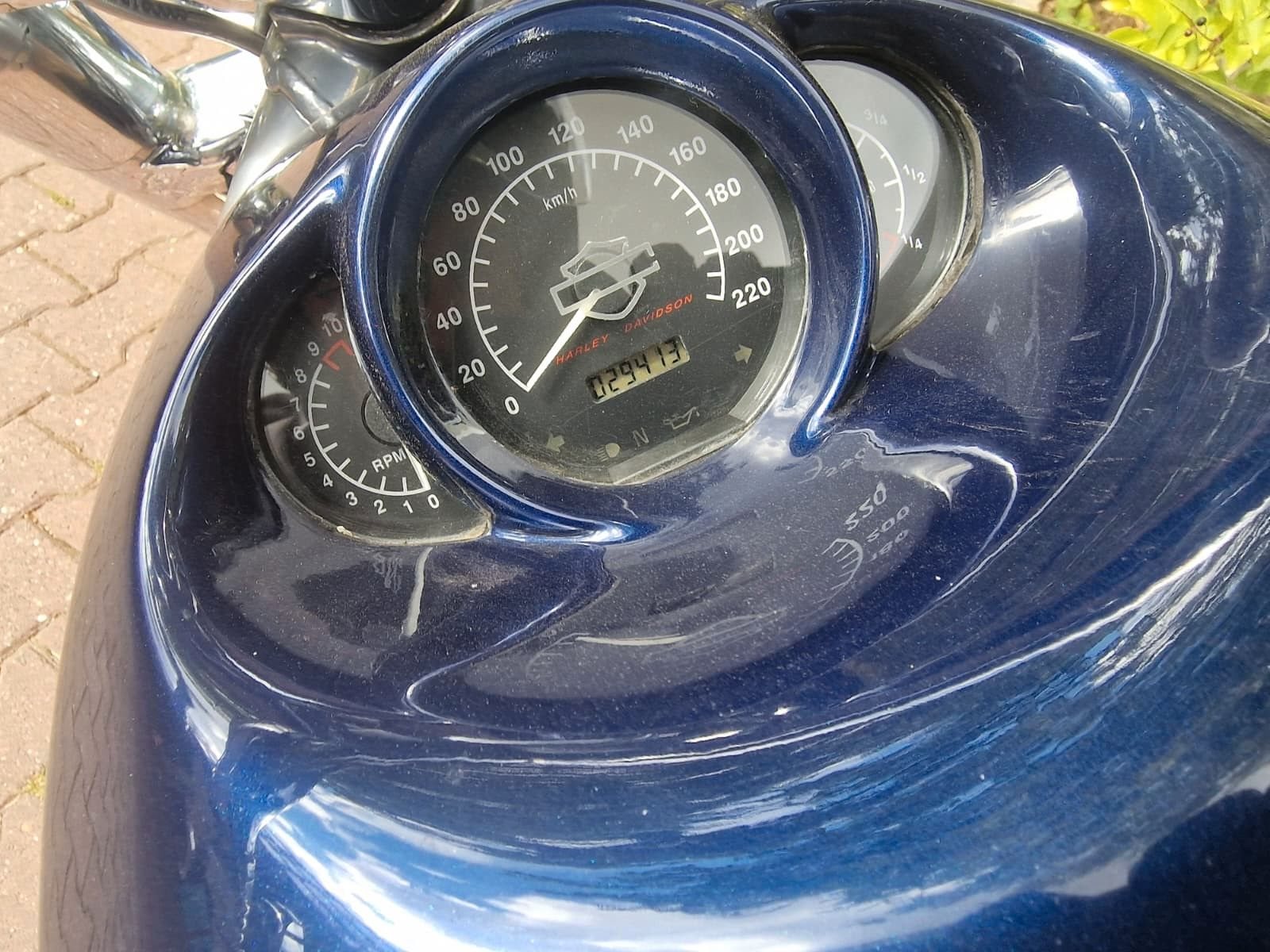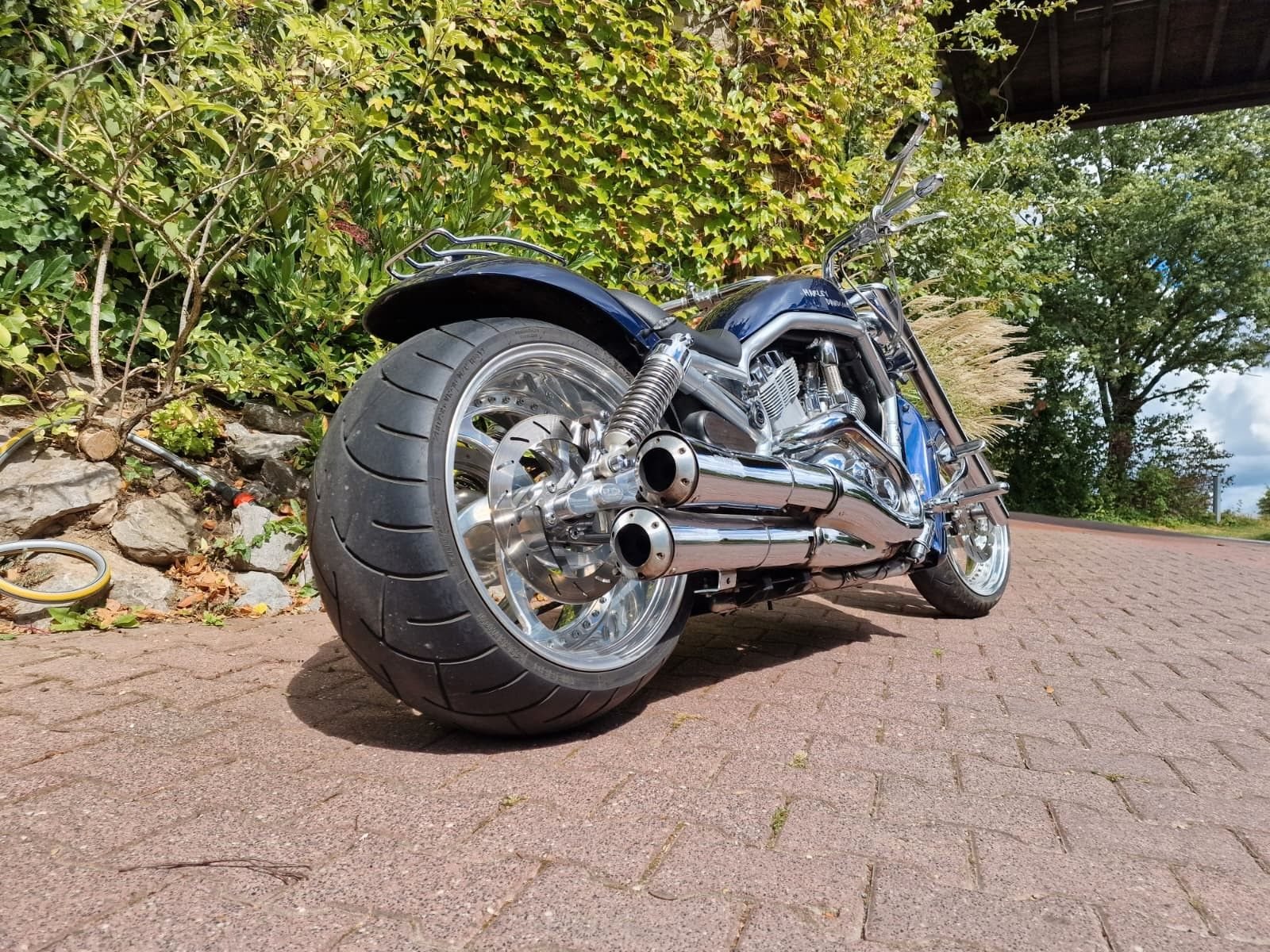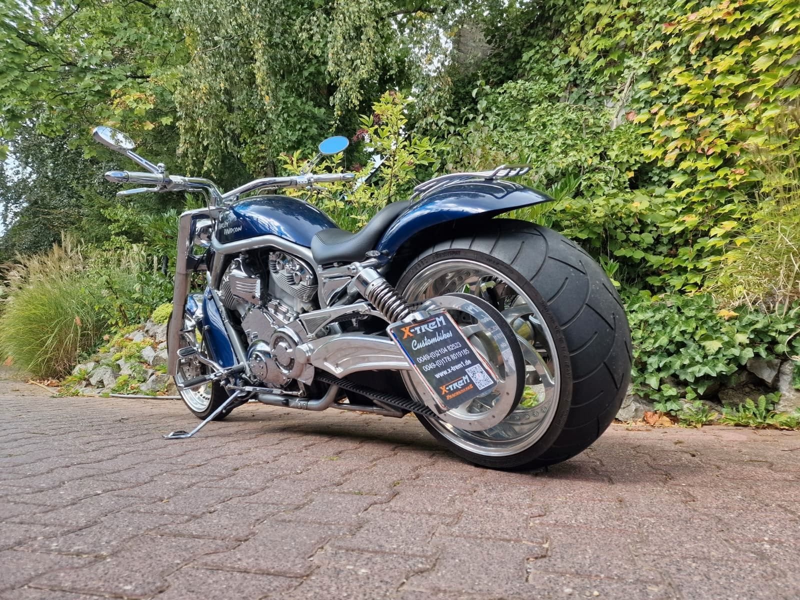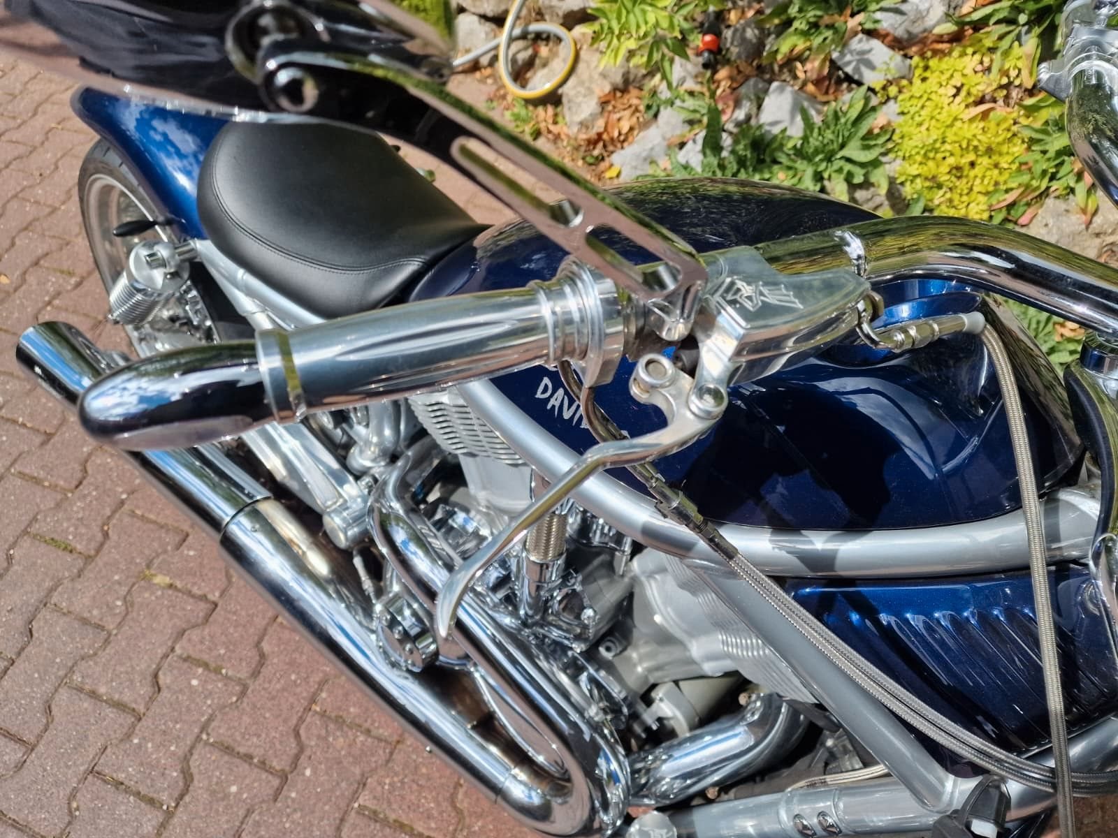 Extras: 10,5 x 18 dreiteiliges Hinterrad Ricks 280/35 R18 Hinterreifen 4,5 x 18 dreiteiliges Vorderrad Ricks 130/60 VR 18 Vorderreifen Ricks CNC Designschwinge aus Aluminium Öhlinsstoßdämpfer Thunderbike 3D Freestyle Gabel Thunderbike Freestyle Lenker Kesstech elektronisch einstellbar Ricks Bremsscheibe vorne & hinten Ricks Design Pulley hinten 2x4 Kolben PM Bremssattel vorne Stahlflex Bremsleitung vorne & hinten Airboxcover Thunderbike Kühlercover Jack Lomaxx Rebuffini Armaturen Hydraulisch Rebuffini Schaltereinheiten mit Minitasten Rebuffini Griffe Rebuffini Gaszuggehäuse Stahlflexgaszüge Hinterradbremssattelkit chrom HD Seitlicher Kennzeichenhalter Thunderbike mit Inside Nummernschildplatte Kellermann Blinker in den Lenkerenden Kellermann 3-1 Blinker hinten LED Thunderbike Heckfender Recall Schalthebel Slotted HD chrom Bremshebel HinterradSlotted HD chrom Scheinwerfer Thunderbike Highlight Gepäckträger Solositz mit braunen Leder bezogen Seitenabdeckung chrom HD Thermostatgehäuse chrom HD Kühlmittelleitung Edelstahl Fußrasten Slotted chrom Hd Rizoma Beltabdeckung Alu gefräst Schaltgestänge mit V-Rod Schriftzug HD Custom Spiegel Bullet Ricks Stützlagerplatte Ricks Versatzpulley Zylinderfußabdeckung chrom Hupencover chrom Billet Nockenwellencover chrom HD Lichtmaschinendeckel chrom HD Kupplungsdeckel HD chrom Bremszylindercover chrom Diverses weiteres chrom Zubehör, Schraubencover usw.