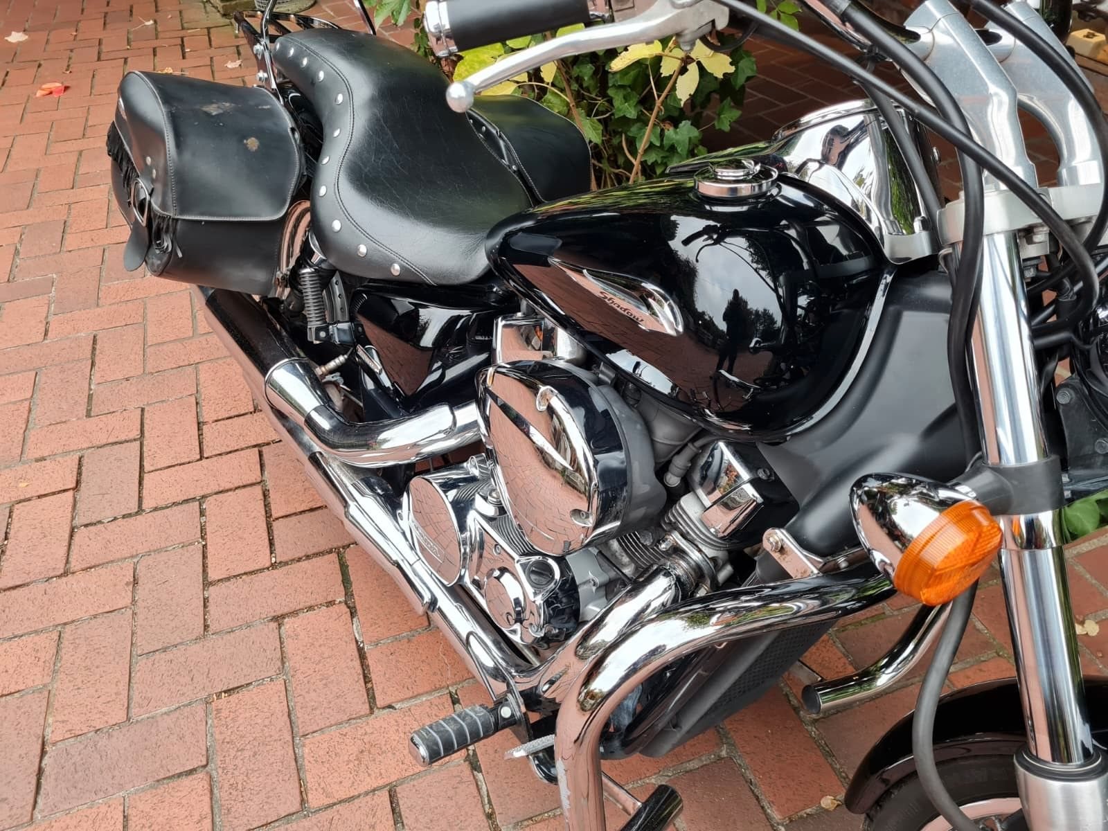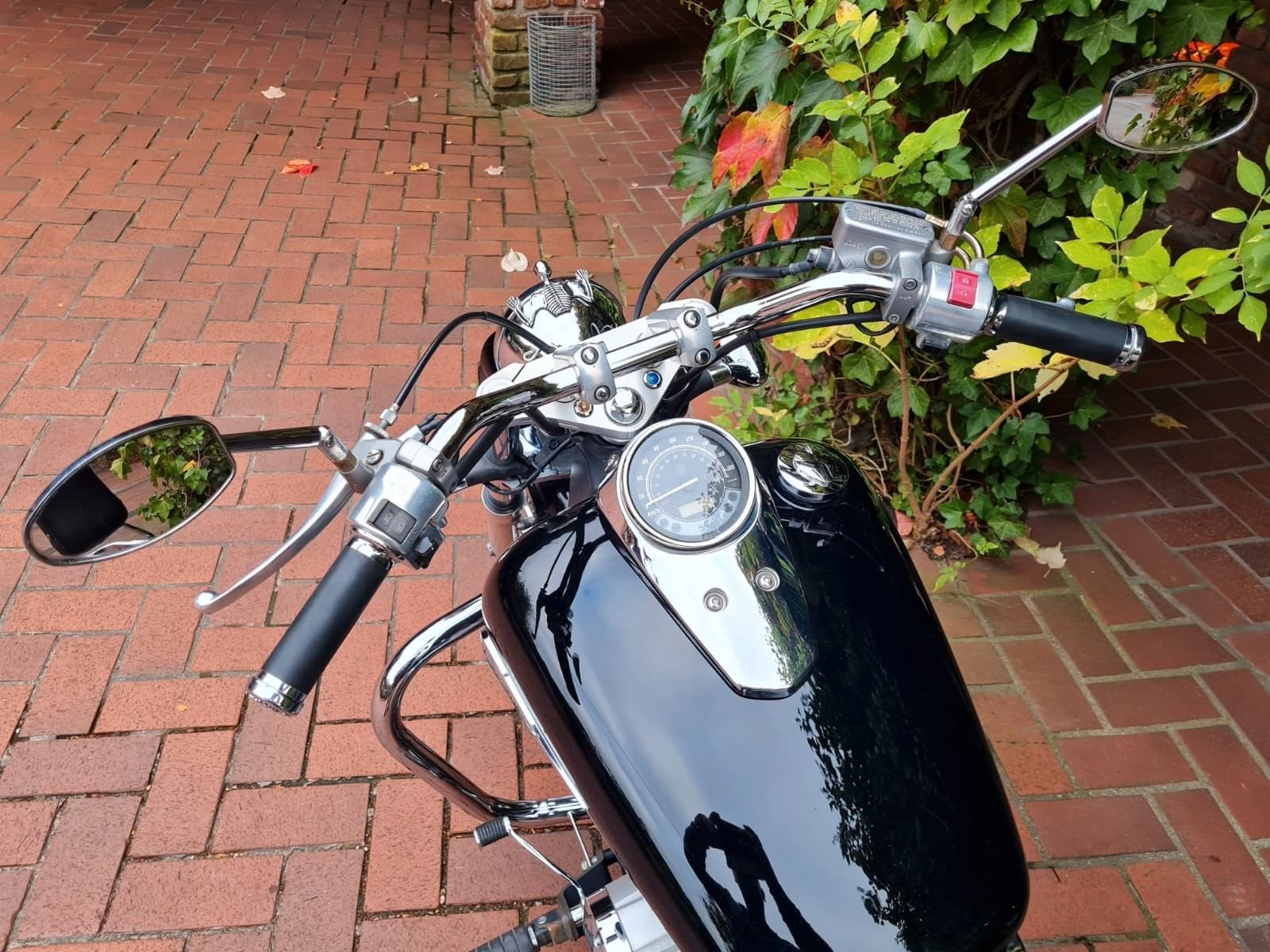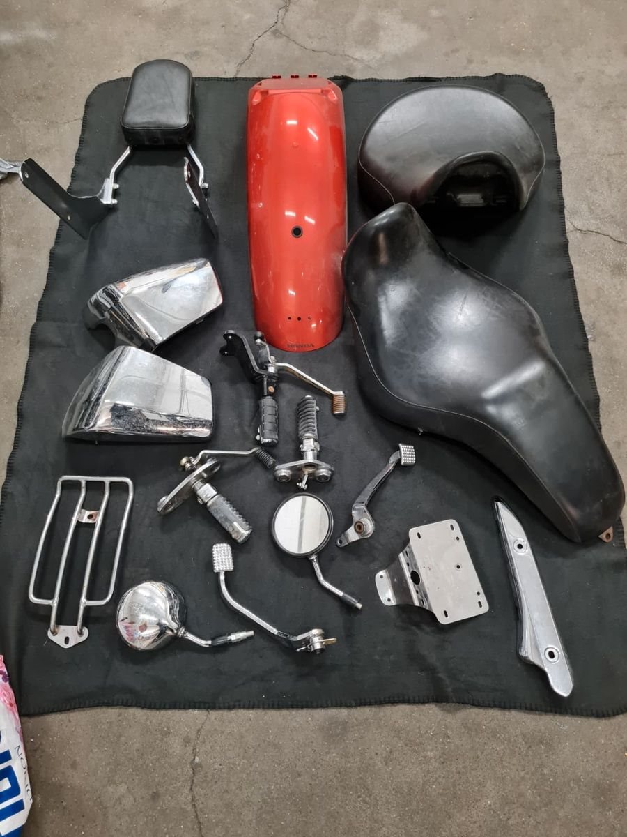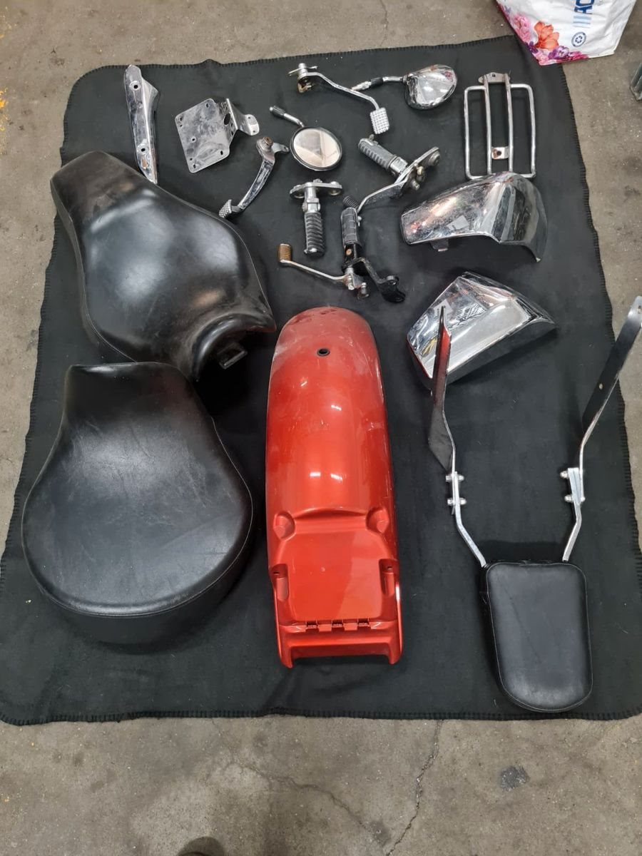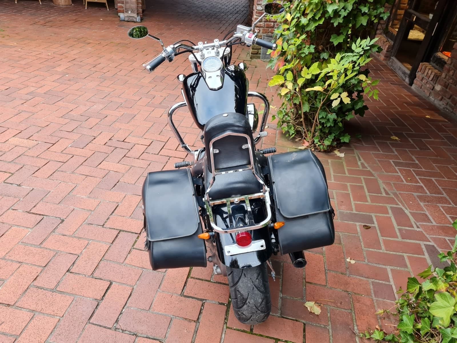 Extras: Customsitzbank Ledersatteltaschen Sissybar Gepäckträger Heckfender gekürzt Sturzbügel Kleine Blinker hinten Sparto Rücklicht usw.