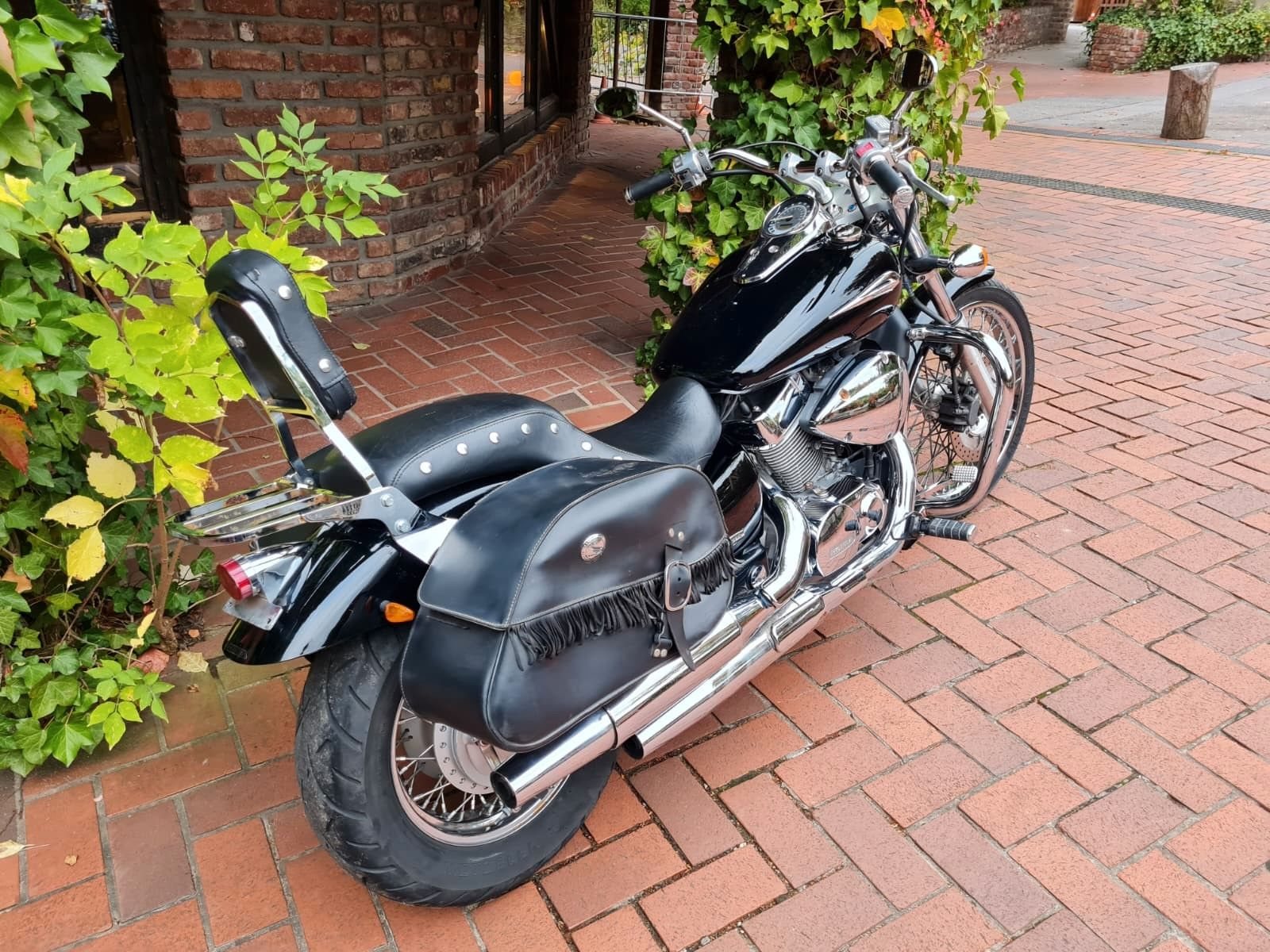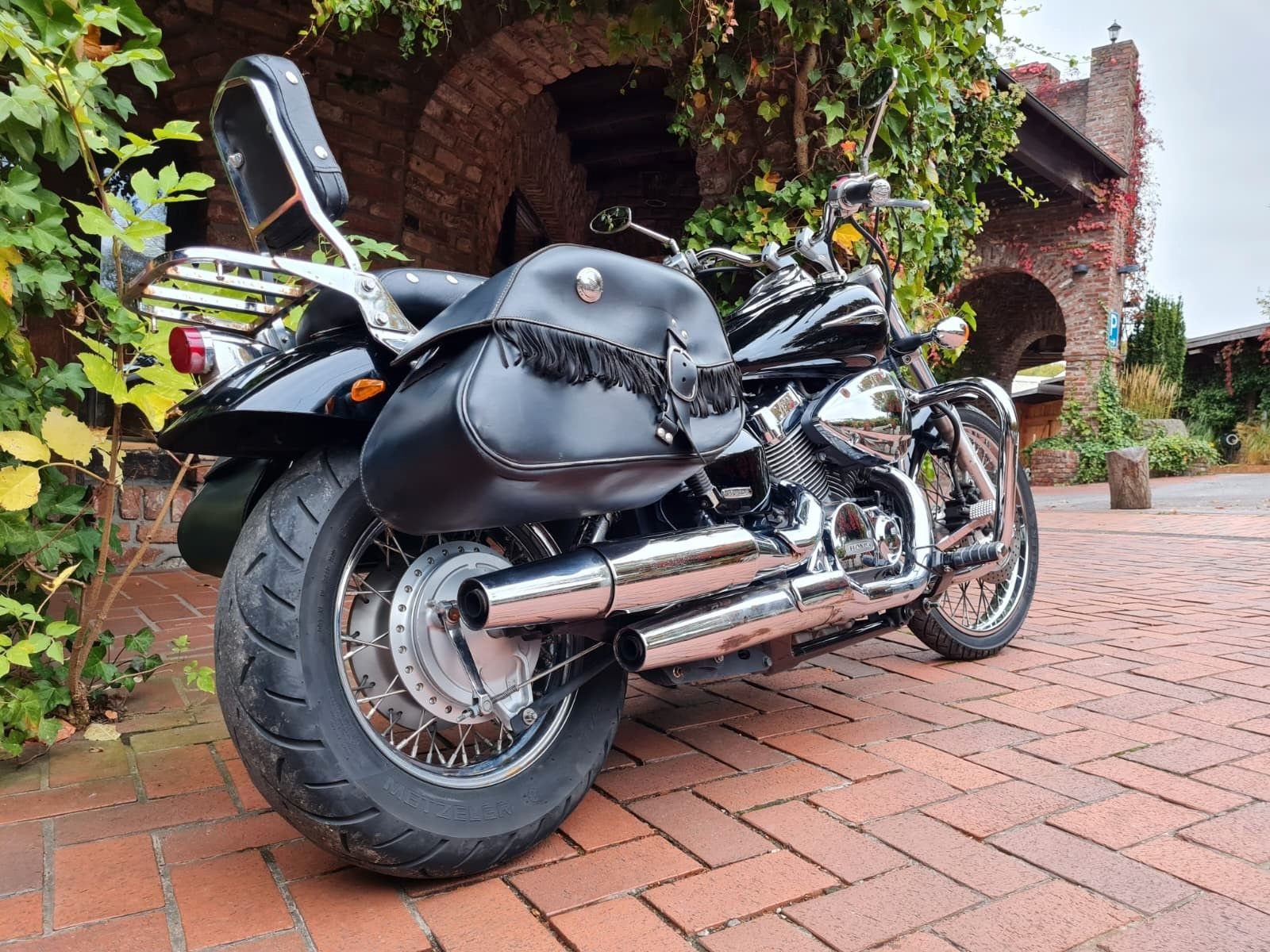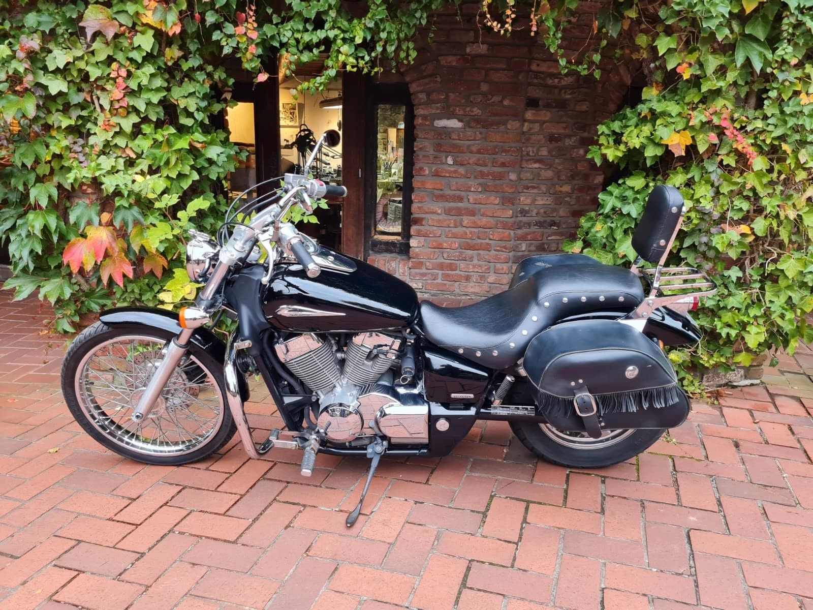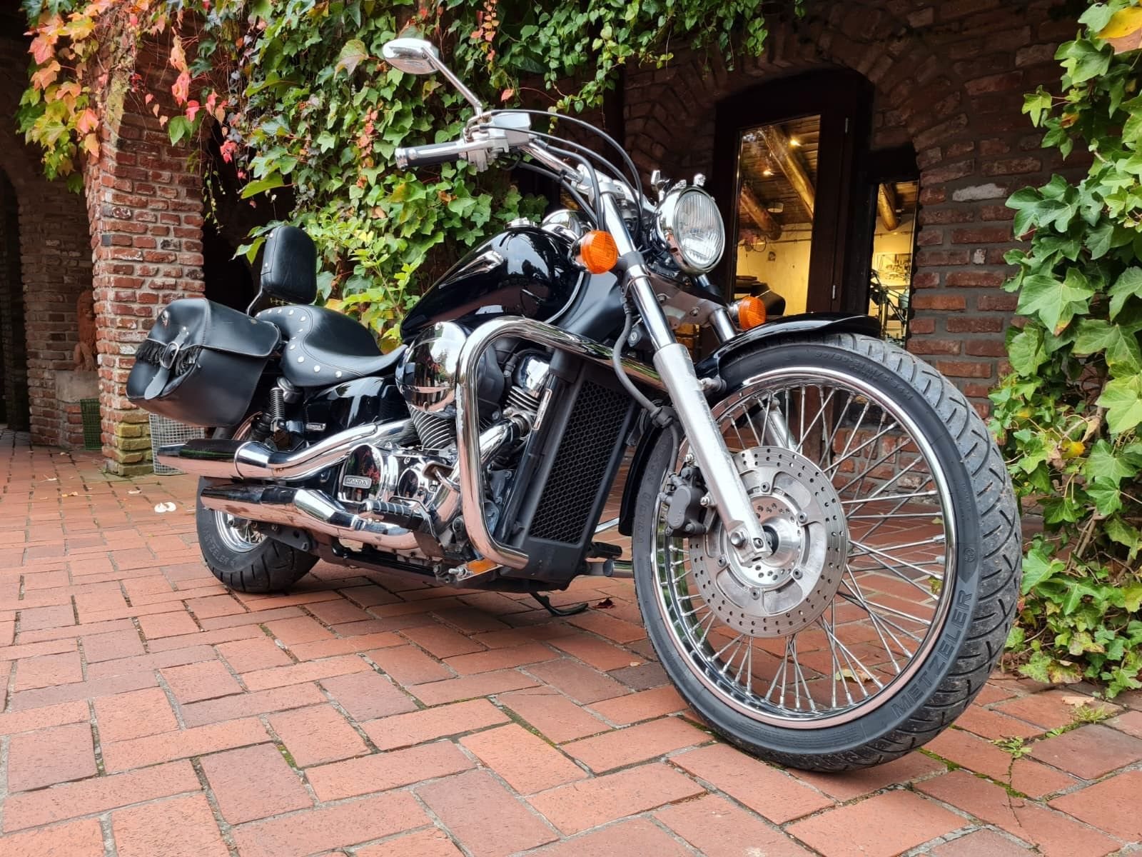 Bieten für einen Kunden die beliebte Honda VT 750 C2 zu einem sehr fairen Seasonendpreis an. Das Bike hat einige Extras, und es ist noch ein Karton mit originalen und unzähligen Zubehörteilen dabei, die auf den letzten Bildern zu sehen sind. Sie ist in guten Zustand, hat aber natürlich Gebrauchsspuren.Der Kunde hat die Honda auf seine Harley in Zahlung genommen, die wir für Ihn verkauft haben, und uns abermals mit dem Verkauf beauftragt. Es sind Metzeler Marathon 888 montiert mit einem Profil vorne ca. 4,5 mm und hinten ca. 3,5mm. Das Fahrzeug wurde in den letzten Jahren viel auf Langestrecken bewegt.