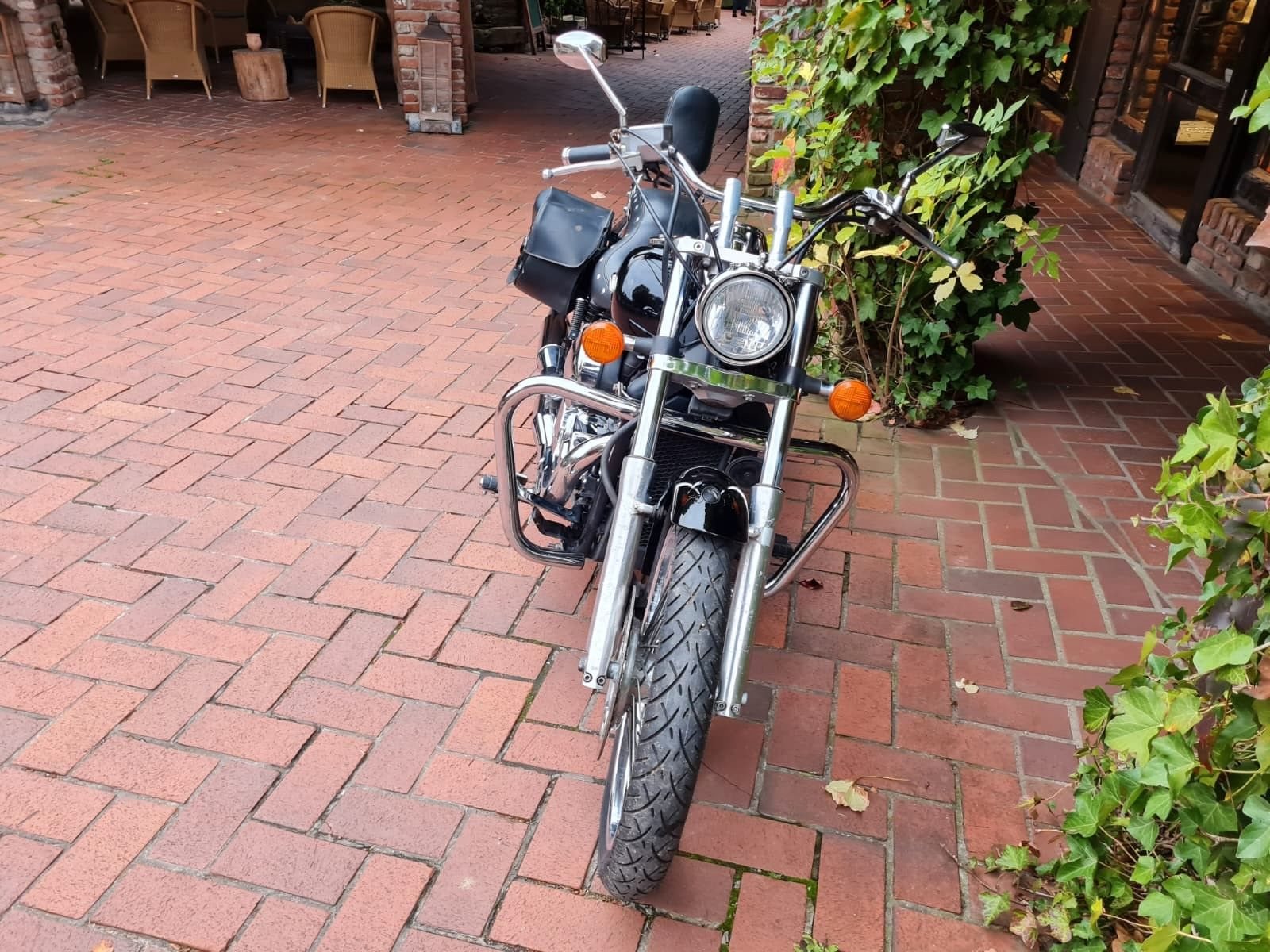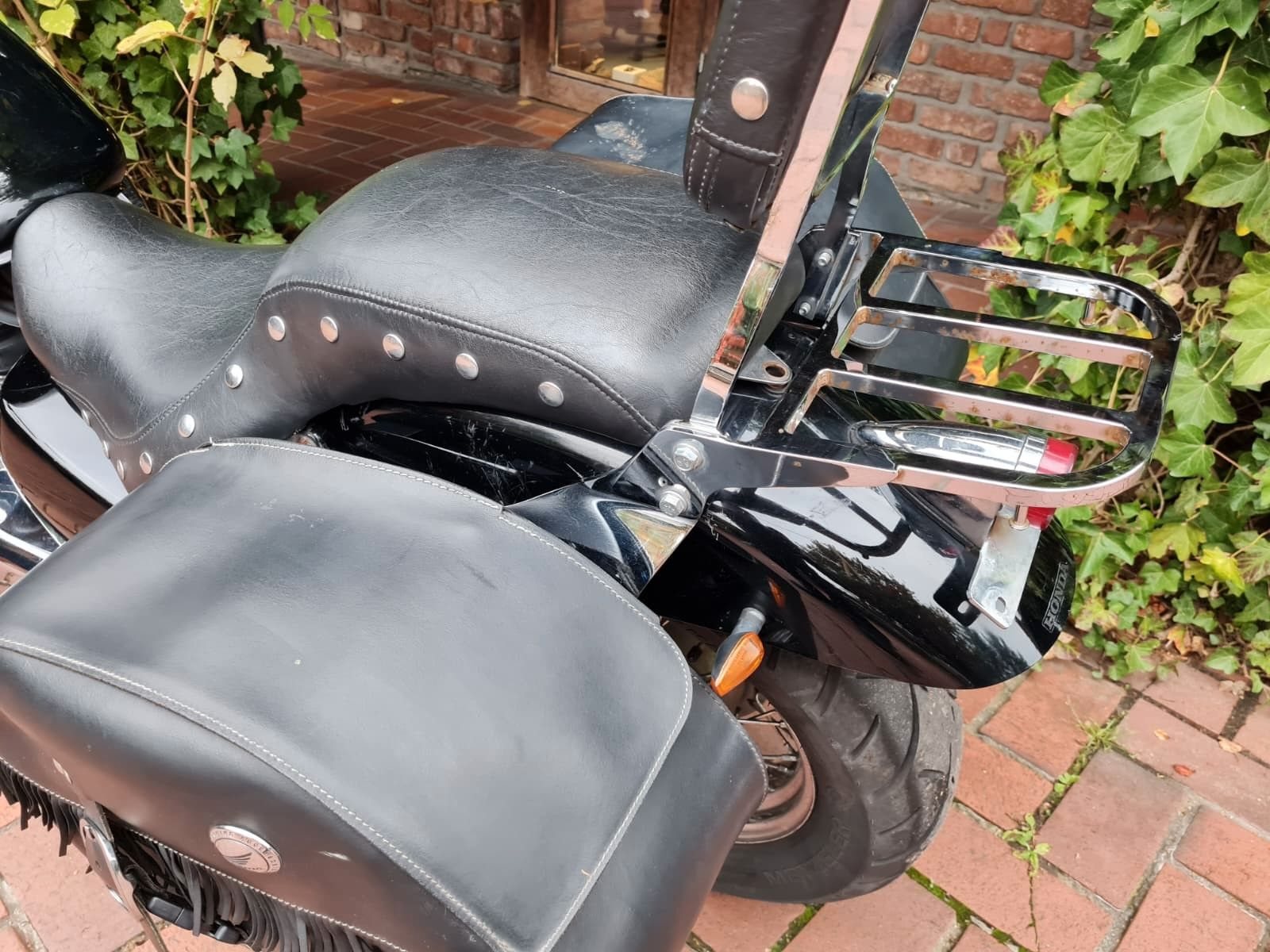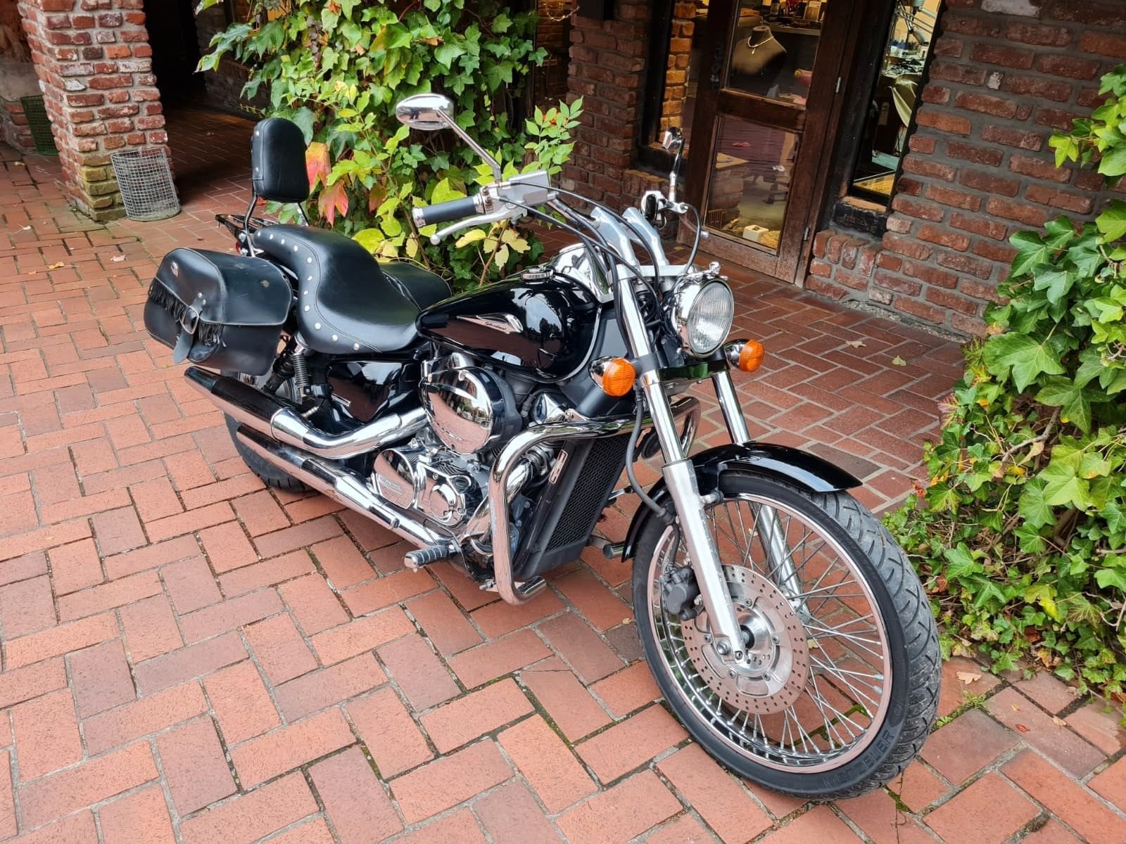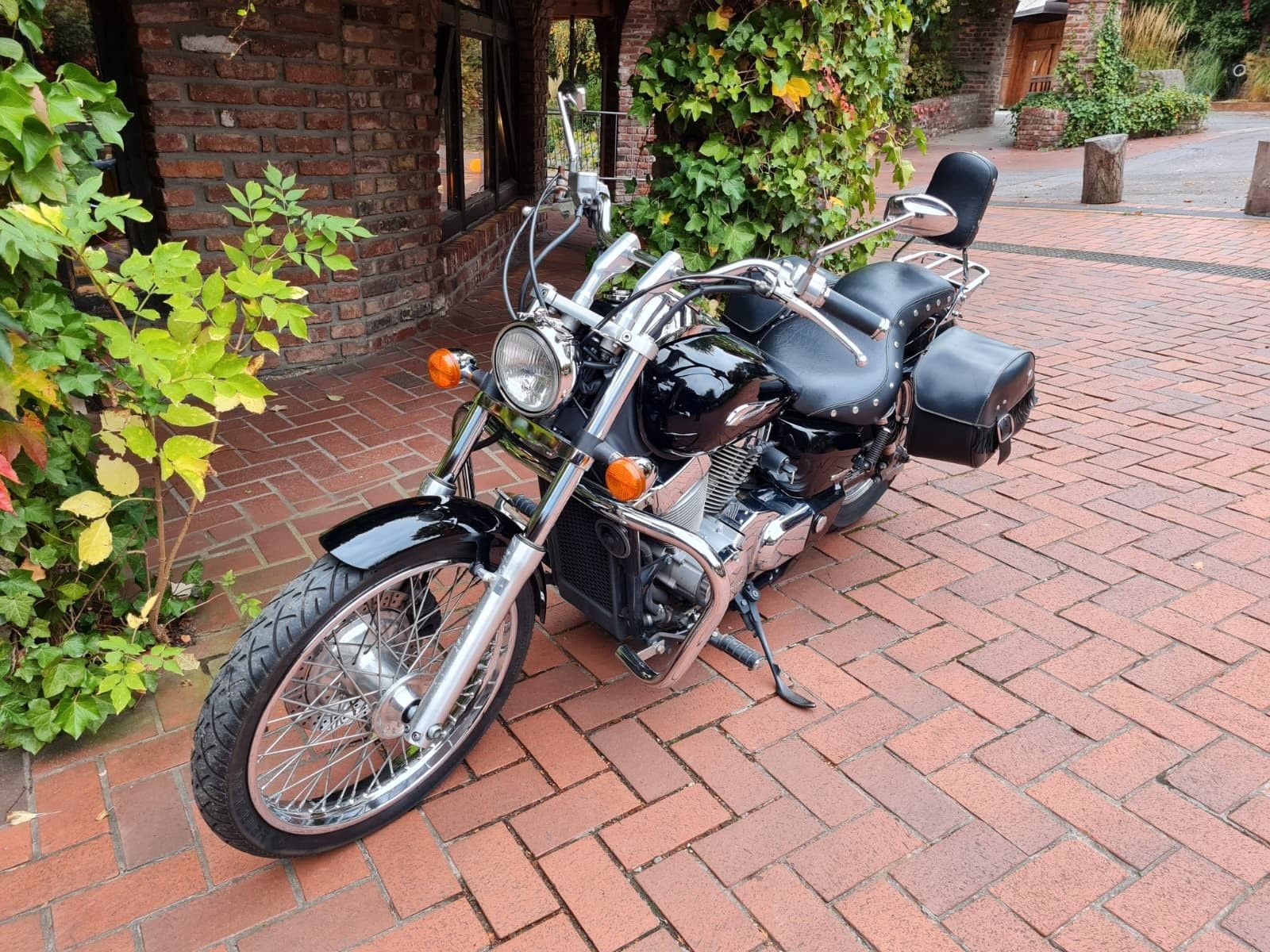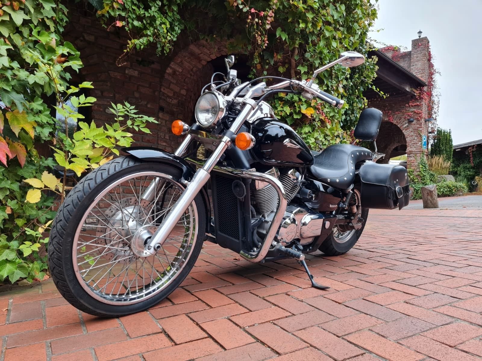Bieten für einen Kunden die beliebte Honda VT 750 C2 zu einem sehr fairen Seasonendpreis an. Das Bike hat einige Extras, und es ist noch ein Karton mit originalen und unzähligen Zubehörteilen dabei, die auf den letzten Bildern zu sehen sind. Sie ist in guten Zustand, hat aber natürlich Gebrauchsspuren.Der Kunde hat die Honda auf seine Harley in Zahlung genommen, die wir für Ihn verkauft haben, und uns abermals mit dem Verkauf beauftragt. Es sind Metzeler Marathon 888 montiert mit einem Profil vorne ca. 4,5 mm und hinten ca. 3,5mm. Das Fahrzeug wurde in den letzten Jahren viel auf Langestrecken bewegt.
