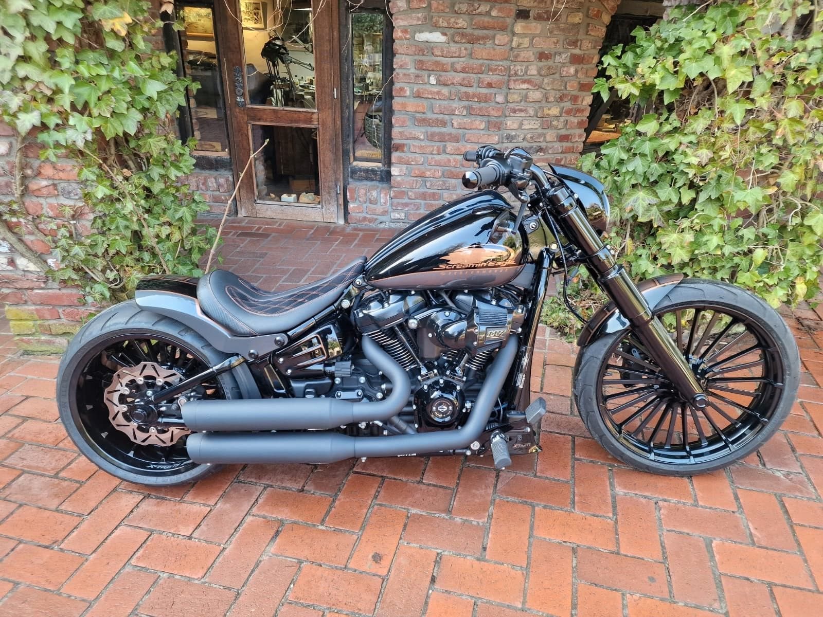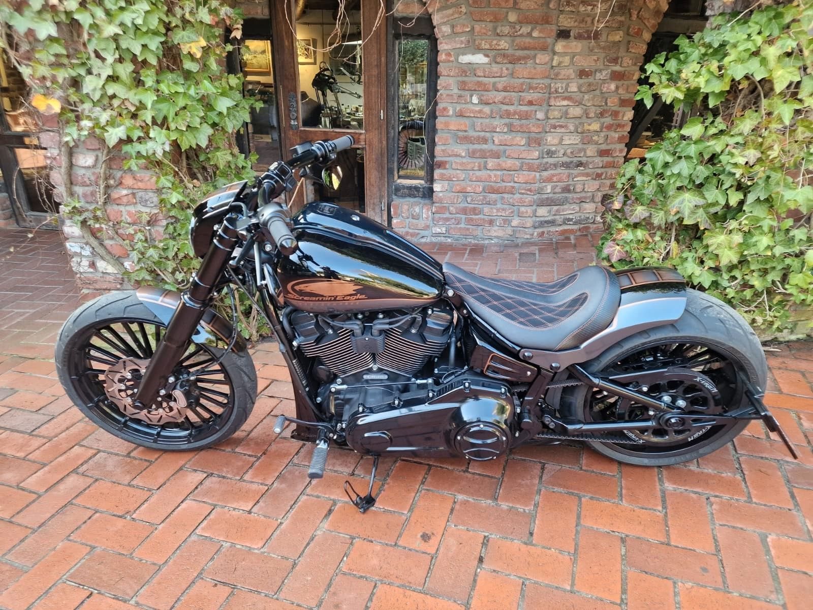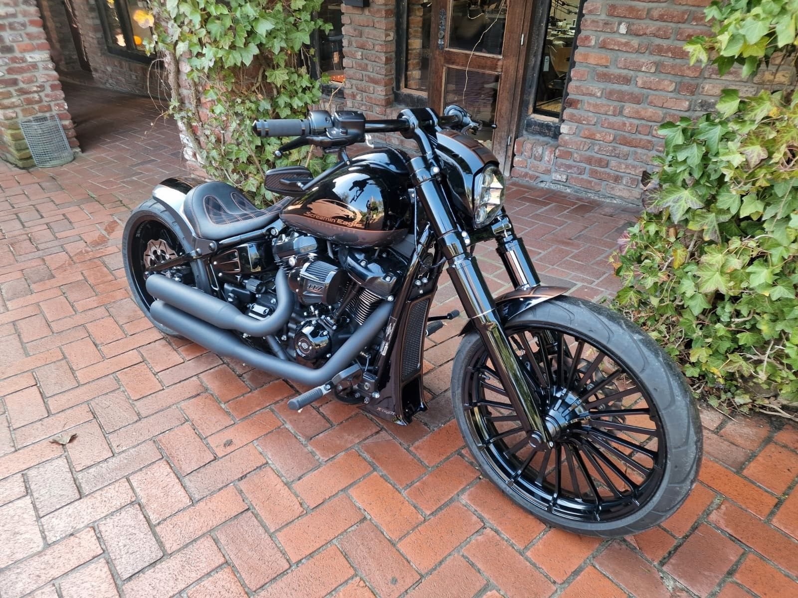 Exklusive Harley-Davidson Breakout 117 Custom (Modell 2024) Einzelstück | 280er Breitreifen | Stage 2 Performance | Erst 413 km Zum Verkauf steht eine nach Kundenwunsch individuell umgebaute Breakout 117 aus dem Modelljahr 2024. Dieses Fahrzeug wurde gezielt gewählt, um noch die Euro 5 Spezifikation zu erhalten - inklusive der formschöneren Armaturen und der dezent in die Riser integrierten Digitalinstrumente,sowie den wunderschönen und leistungsfördernden Heavy Breather Luftfilter wie es bei Modellen ab 2025 nicht mehr verbaut wird. Das Fahrzeug befindet sich in einem absolut neuwertigen Zustand und wird nun nach nur 413 km aus gesundheitlichen Gründen schweren Herzens abgegeben.Selbstverständlich handelt es sich bei der Breakout um eine deutsche Auslieferung, und hat noch Werksgarantie.