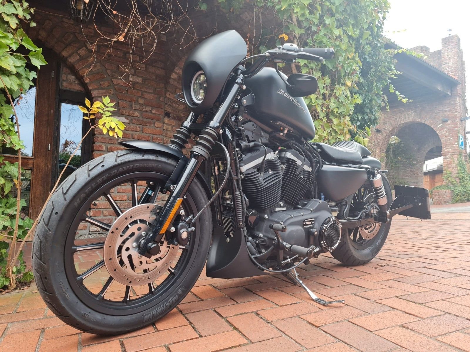 Komplett von X-Trem Custombikes umgebaute XL 883 Iron. Das Bike ist aktuell im Dezember 2025 von uns fertiggestellt worden. Die wunderschöne Iron ergibt wie von uns gewohnt ein sehr stimmiges Gesamtbild. Es handelt sich um ein 5HD Modell aus deutscher Auslieferung vom deutschen Vertragshändler. Das Zertifikat und COC Papier sind vorhanden. Das Bike befindet sich in sehr gepflegten Topzustand, und wurde von uns im Zuge des Umbaus auf Herz und Nieren geprüft. Es ist eine 48 PS Drosselung eingetragen , und somit Ideal für Führerscheinneulinge. Selbstverständlich kann diese auch ausgetragen werden. Einfach draufsetzen und los gehts. Die Extras des umfangreichen Umbaus sind unten aufgeführt.