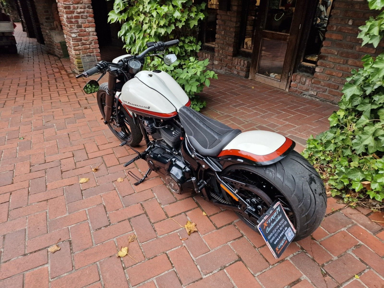 Abgerundet wird das Erscheinungsbild durch eine exklusive, individuell abgestimmte dreifarbige Lackierung, die dieses Custombike zu einem echten Unikat macht.